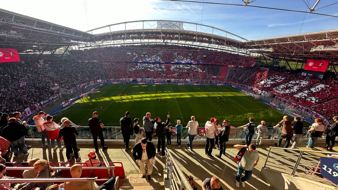 Einmal waren wir in Leipzig in der RB-Arena. Damals war ein Spiel RB Leipzig gegen SC Freiburg. Das war ein wunderbares Spiel. Die Atmosphäre im Stadion nach der ersten Halbzeit war sehr angespannt, da es 0:1 stand. Am Anfang der zweiten Halbzeit hat sich die Situation aber geändert, da Willi Orban ein Tor geschossen hat. Am Ende des Spiels war der Spielstand 3:1 und fast alle Fans waren zufrieden und glücklich. Das war natürlich ein atemberaubendes Abenteuer.